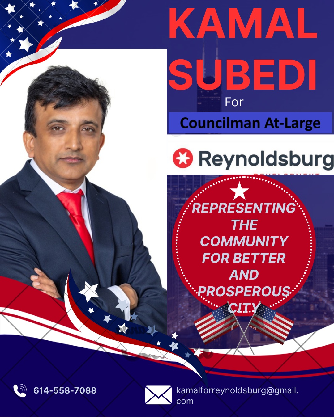 Kamal Subedi, a dedicated educator, community member, and proud Reynoldsburg resident since 2014, is running for Council At-Large. Alongside his wife Chandra and their two children, Kamal has built a life rooted in family values, education, and service. Their multigenerational household in the Taylor Road neighborhood reflects a commitment to cultural traditions, community resilience, and unity.